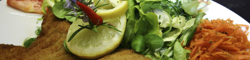 Paniertes Schweinsschnitzeli mit Pommes frites und Rüebli